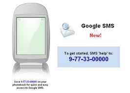 Simply send your search query by SMS to 9773300000 and you will get results back by SMS immediately. Save 9-77-33-00000 on your phonebook for quick and easy access to Google SMS. Google SMS will return results using your saved location if no location is specified.